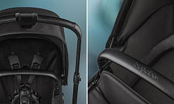 • Механизм регулировки одной рукой — складывание, изменение наклона спинки, регулировка подножки и длины козырька.