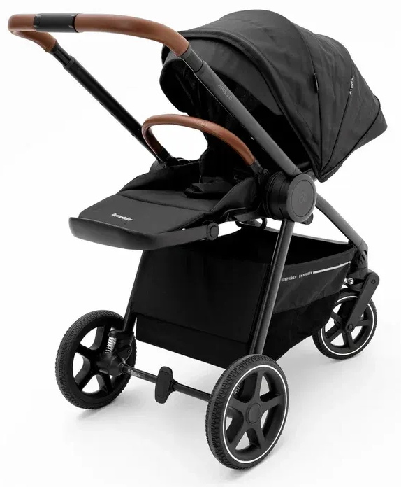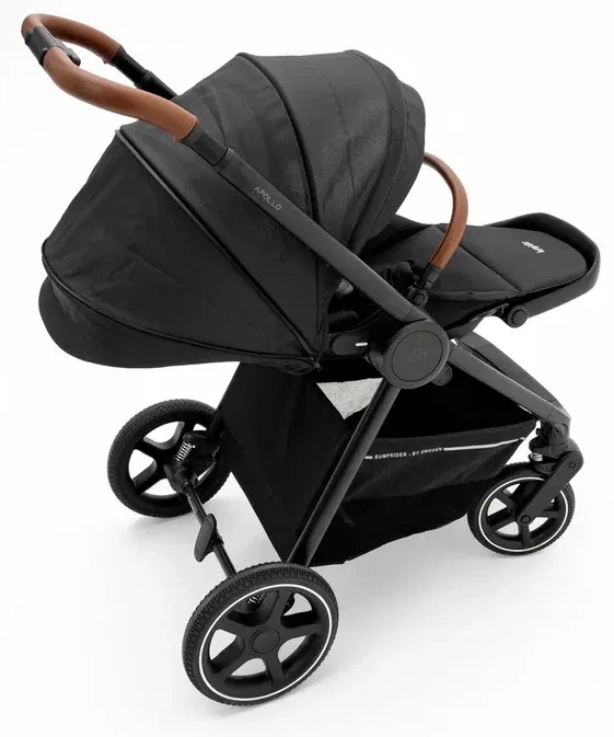 Bumprider Apollo имеет большие непрокалываемые колеса, телескопическую ручку и багажную корзину, в которой найдется место и для покупок, и для необходимых на прогулке вещей. При помощи адаптеров (входят в комплект) на шасси можно устанавливать автокресло группы 0+.