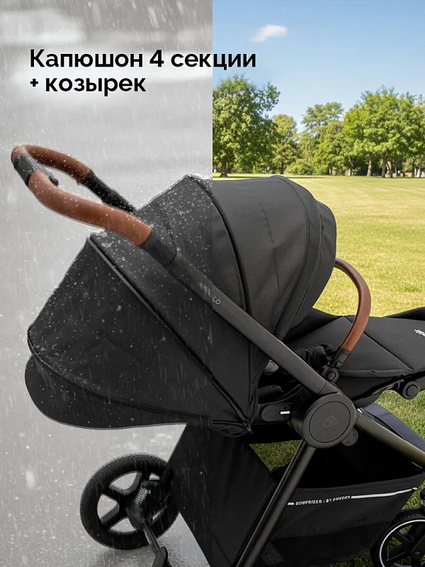 - капор большой, имеет 4 секции (одна из которых с сетчатым окошком) и отстегивающийся козырек;