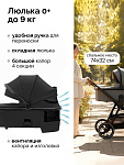 Просторная люлька с мягким матрасиком создаст у новорождённого ощущение нахождения у мамы на руках. Для защиты от солнца и ветра капюшон можно расширить, а для дополнительной циркуляции воздуха предусмотрена вентиляция капора и изголовья. Люлька компактно складывается, что облегчает хранение и транспортировку.