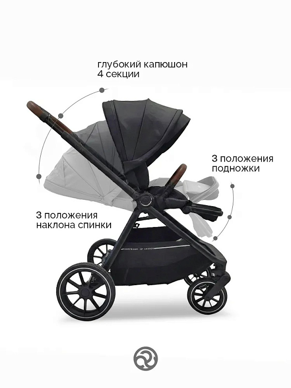 Конструкция сиденья позволяет легко переводить спинку из сидячего положения в полностью горизонтальное, а регулируемая подставка для ног создает дополнительный комфорт и увеличивает спальное место. Защитный бампер откидывается в сторону, облегчая посадку и высадку ребенка.