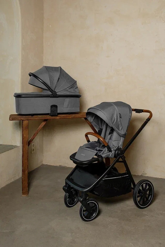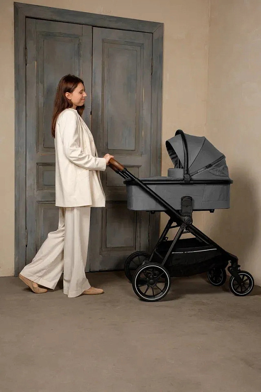 Уникальность коляски в высоком расположении люльки и сиденья, что обеспечивает оптимальную близость и контакт между родителем и ребенком. Телескопическая ручка регулируется на несколько положений по высоте, создавая комфорт на прогулках и невысокой маме, и высокому папе. Объемный складной капюшон оснащен защитой UPF50 +, который может быть расширен для максимальной защиты малыша в солнечные дни.