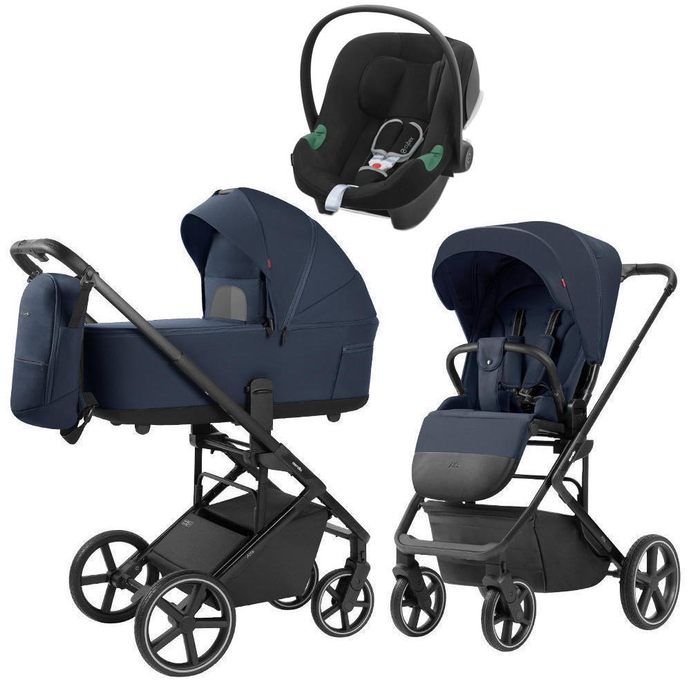 Коляска Carrello Alfa CRL-6522 2025 Cybex Aton B2 i-Size Volcano Black 3 в 1 Denim Blue