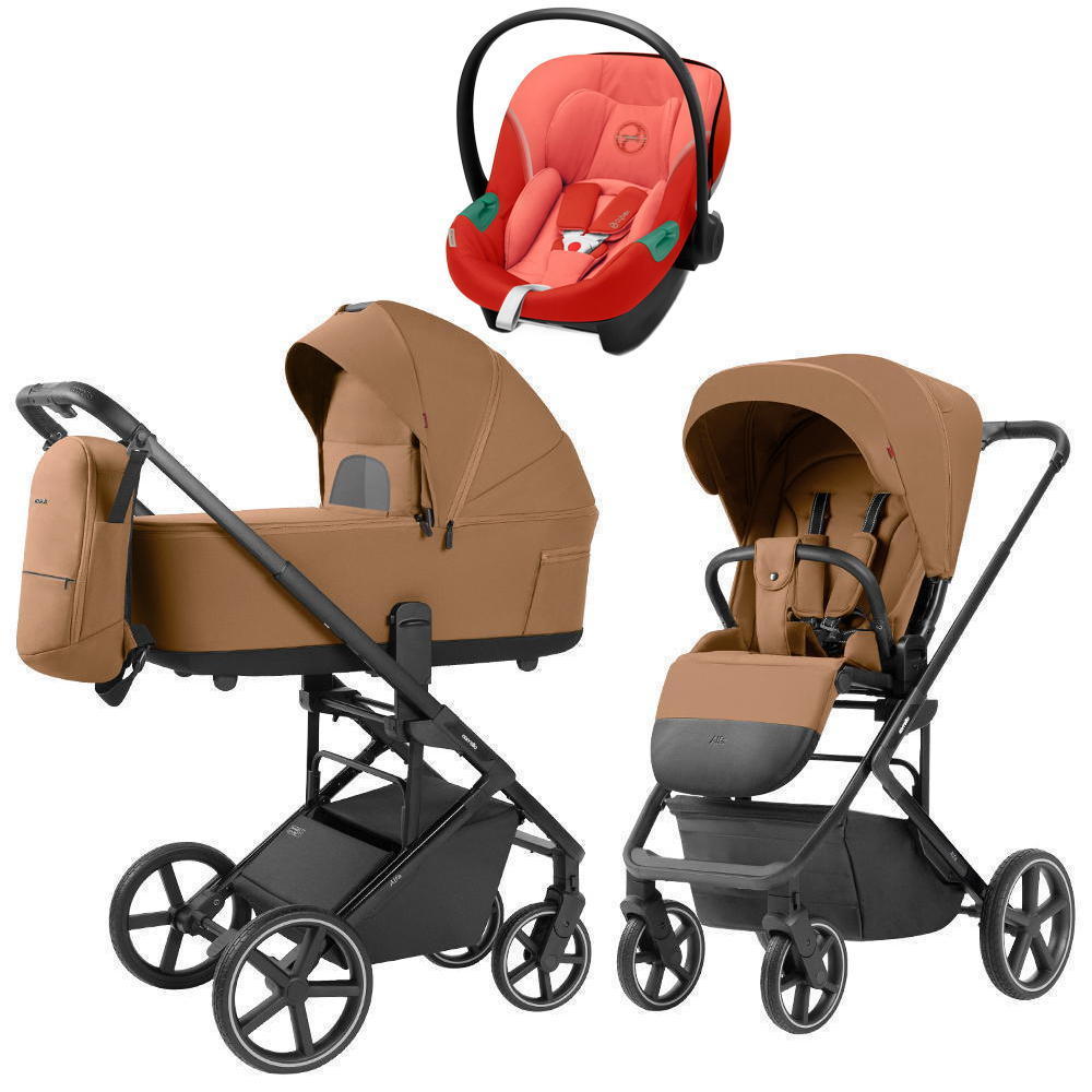 Коляска Carrello Alfa CRL-6522 2025 Cybex Aton S2 i-Size Hibiscus Red 3 в 1 Honey Beige