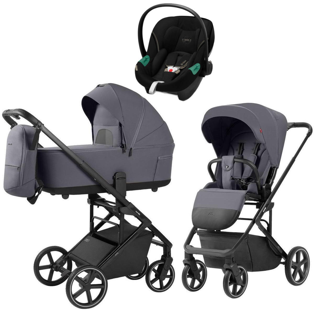Коляска Carrello Alfa CRL-6522 2025 Cybex Aton S2 i-Size Moon Black 3 в 1 Fashion Grey