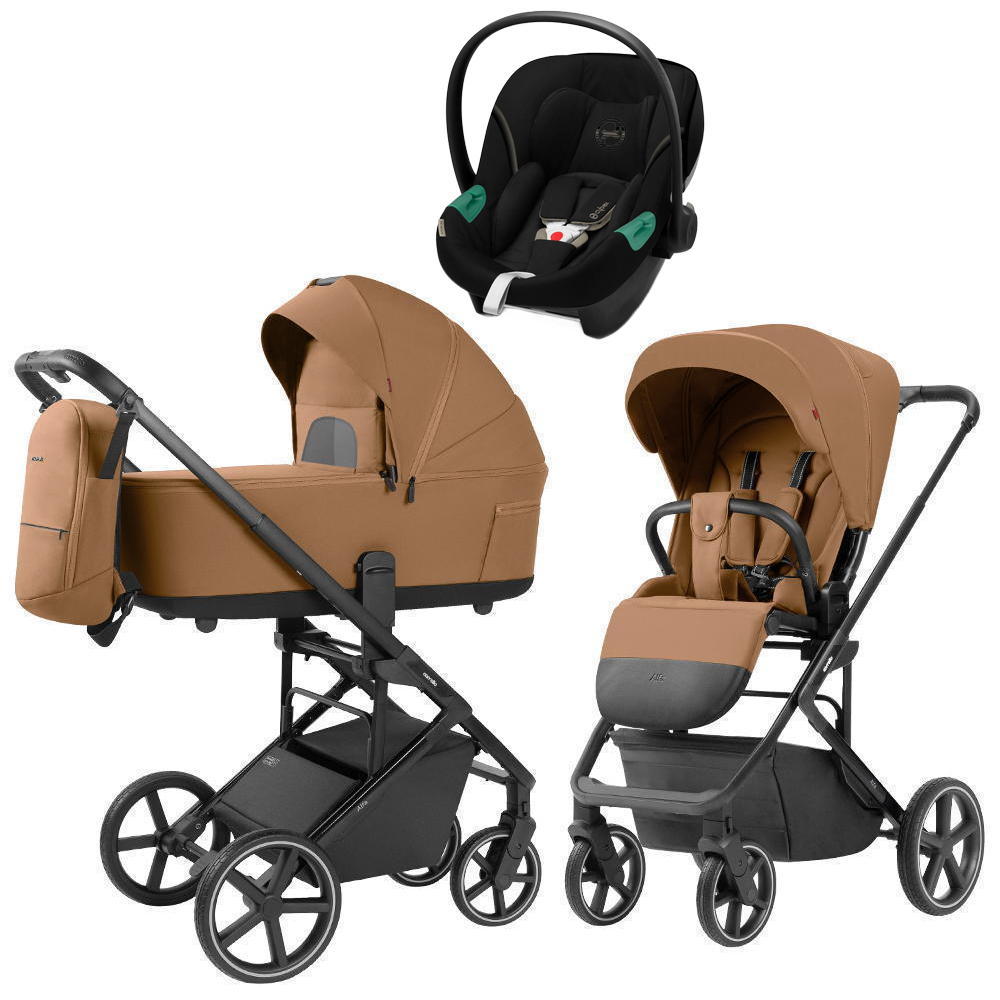 Коляска Carrello Alfa CRL-6522 2025 Cybex Aton S2 i-Size Moon Black 3 в 1 Honey Beige