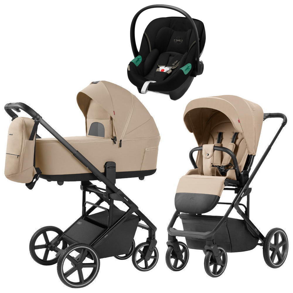 Коляска Carrello Alfa CRL-6522 2025 Cybex Aton S2 i-Size Moon Black 3 в 1 Natural Beige