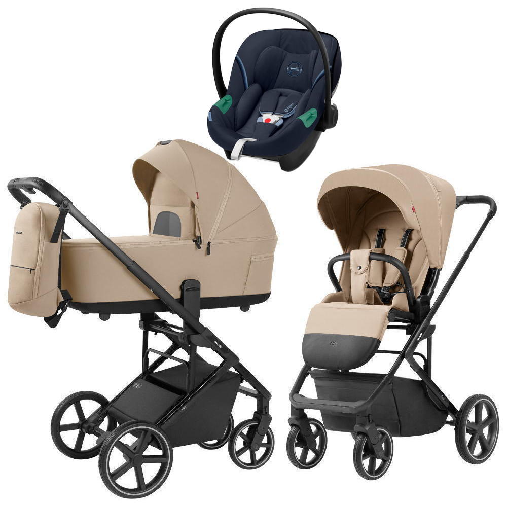 Коляска Carrello Alfa CRL-6522 2025 Cybex Aton S2 i-Size Ocean Blue 3 в 1 Natural Beige