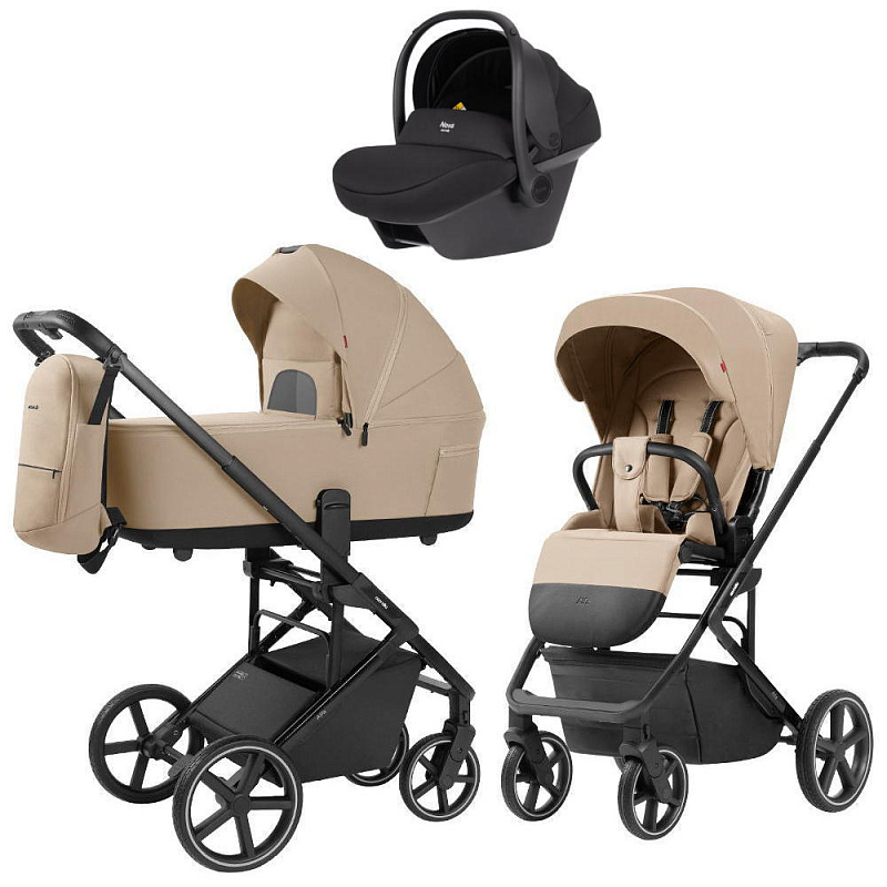 Коляска Carrello Alfa CRL-6522 2025 Nova DK791 Black Line с базой Isofix 3 в 1 Natural Beige