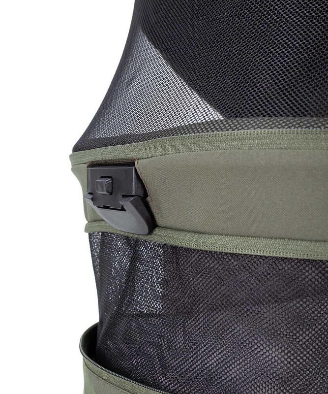 Не снимая люльку, потяните специальный рычаг с внешней стороны изголовья, чтобы расфиксировать её, и сложите пополам до щелчка.