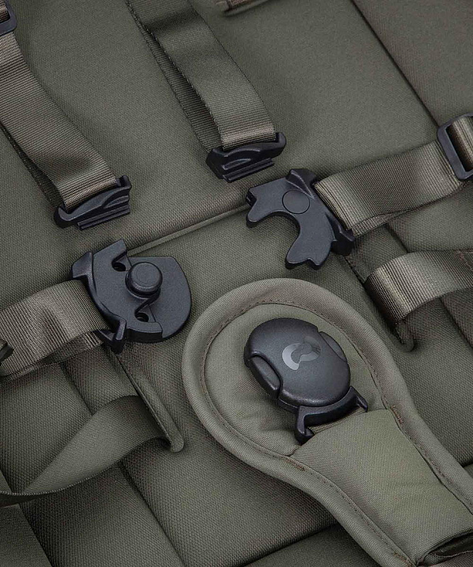 Регулируемые ремни безопасности с мягкими накладками и магнитным замком.