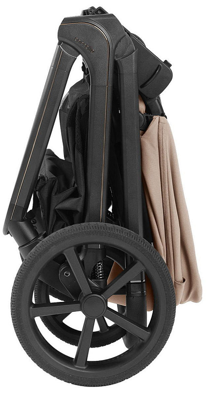 Одним из удобных решений является возможность компактного складывания рамы вместе с установленным прогулочным блоком, что упрощает процесс хранения и транспортировки коляски. Прогулочный блок складывается текстилем внутрь, что позволяет сиденью оставаться всегда чистым, даже если коляска используется в условиях городской суеты.