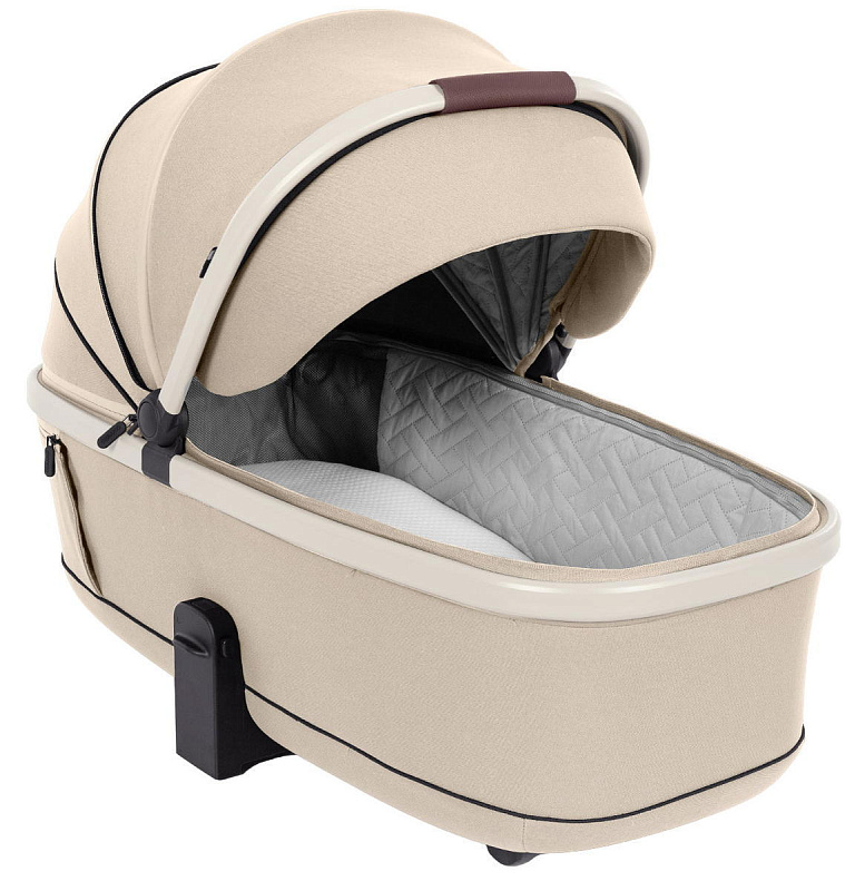 Кап люльки оборудован ручкой для переноски, имеется съемный козырек, дополнительная секция, увеличивающая размер капа, климатическое окно под молнией в корпусе люльки и в капюшоне.
