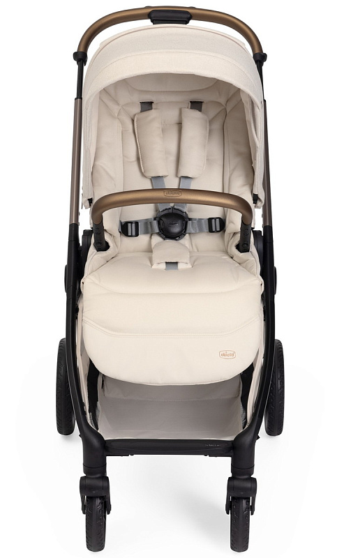 Коляска Bellagio — это произведение дизайна: от роскошных анодированных трубок до металлического значка Chicco и тканей с покрытием — каждая деталь была тщательно продумана, чтобы сделать коляску уникальной.