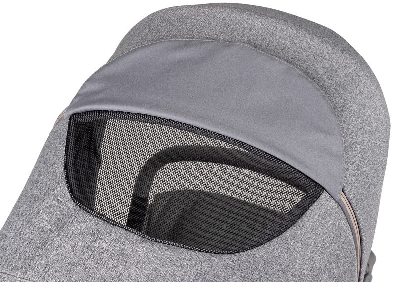 Капюшон люльки увеличивается в размере и имеет защиту от ультрафиолетовых лучей UV50+ и водоотталкивающее покрытие. Встроенный солнцезащитный козырек обеспечивает защиту ребенка от солнечных лучей и укусов комаров.