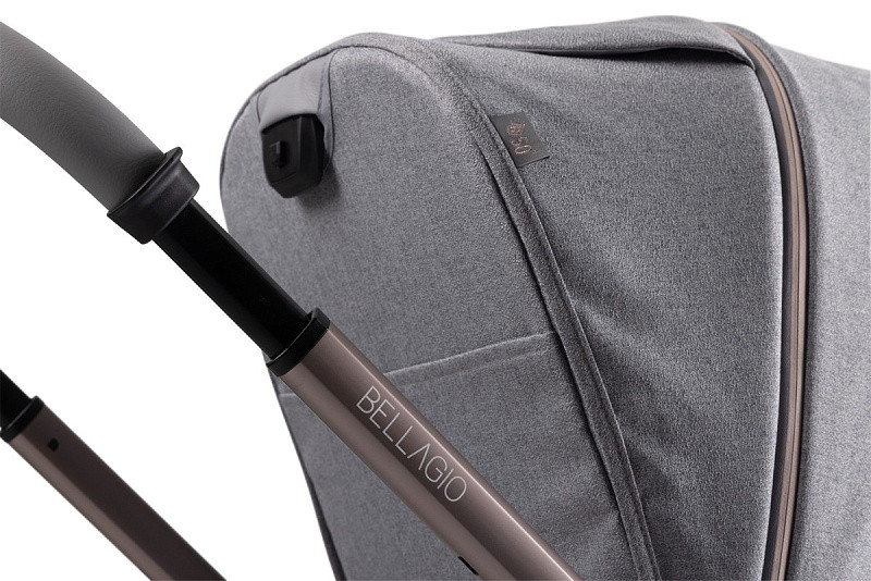 Коляска Bellagio — это произведение дизайна: от роскошных анодированных трубок до металлического значка Chicco и тканей с покрытием — каждая деталь была тщательно продумана, чтобы сделать коляску уникальной.
