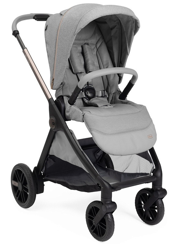 Вся коляска украшена высококачественными деталями: металлическим логотипом Chicco, светоотражающими молниями и вставками из премиальных тканей.