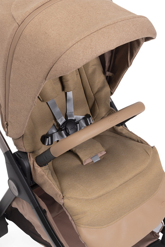 Вся коляска украшена высококачественными деталями: металлическим логотипом Chicco, светоотражающими молниями и вставками из премиальных тканей.
