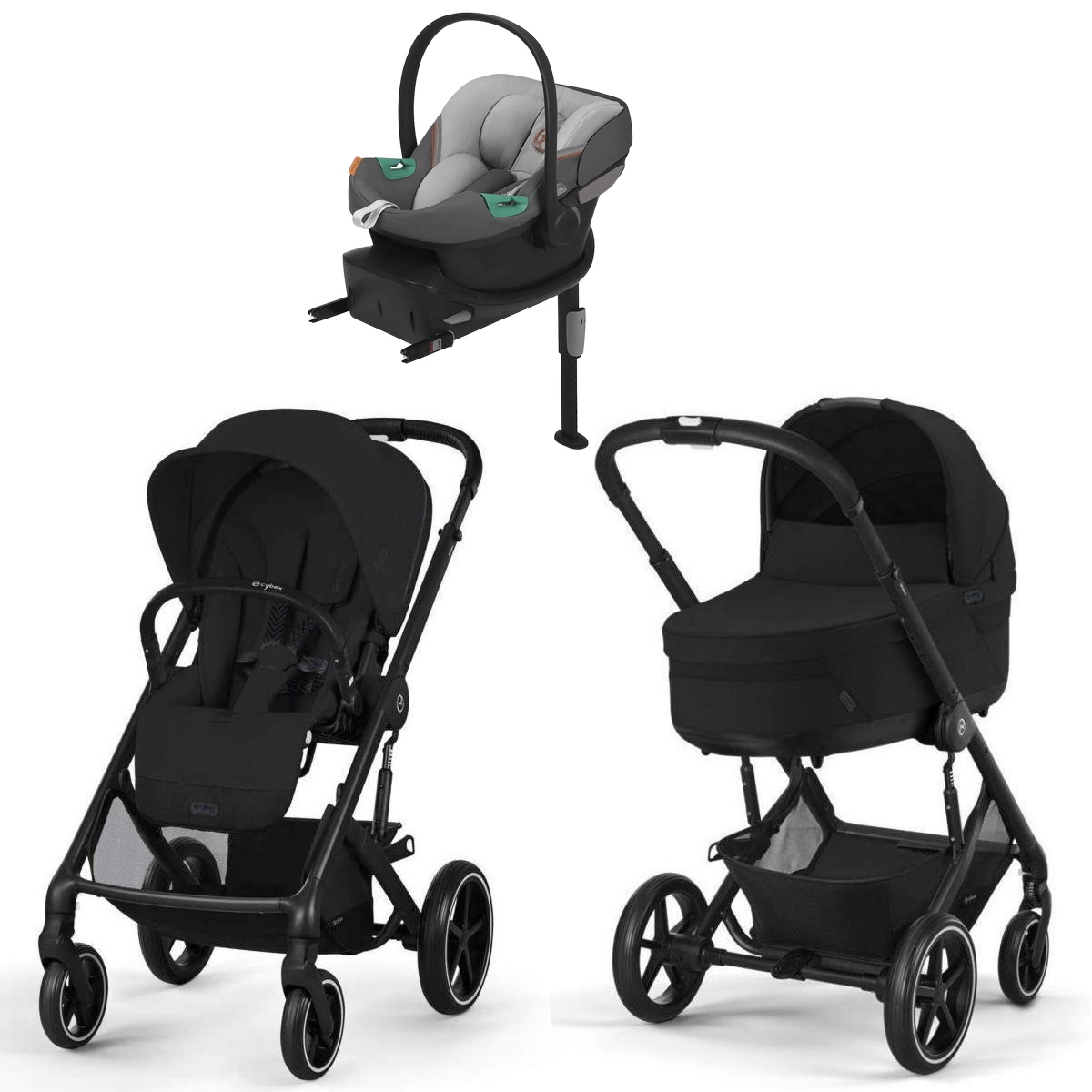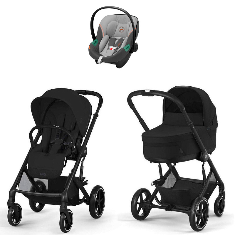 Коляска Cybex Balios S Lux BLK complete Aton S2 Lava Grey Base One 4 в 1 Moon Black с дождевиками