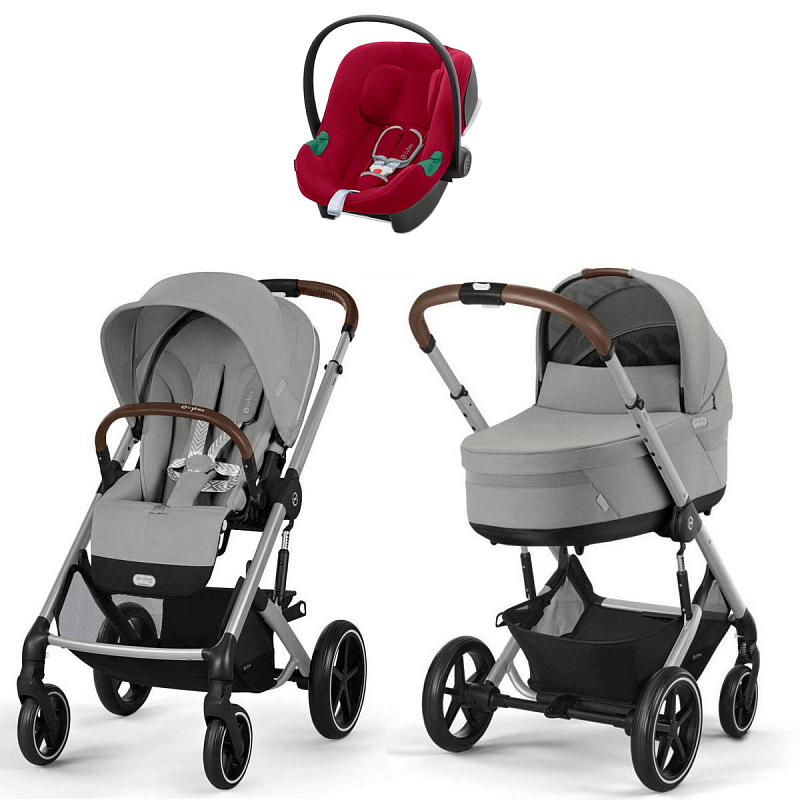 Коляска Cybex Balios S Lux SLV complete Aton B2 Dynamic Red Base One 4 в 1 Stone Grey с дождевиками