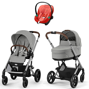 Коляска Cybex Balios S Lux SLV complete Aton S2 Hibiscus Red Base One 4 в 1 Stone Grey с дождевиками