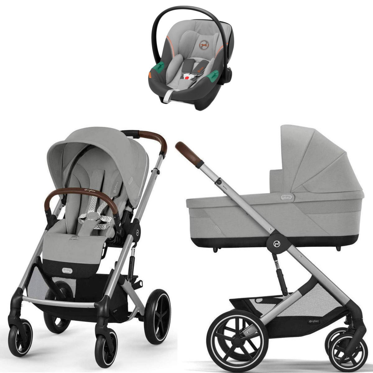 В комплекте: прогулочная коляска Balios S Lux, люлька Cot S Lux, автокресло Cybex Aton S2 i-Size, адаптер для установки на шасси автокресла.