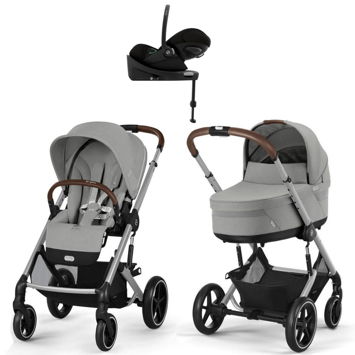 В комплекте: прогулочная коляска Balios S Lux, люлька Cot S Lux, автокресло Cybex Cloud G i-Size с базой Isofix Base G, адаптер для установки на шасси автокресла.