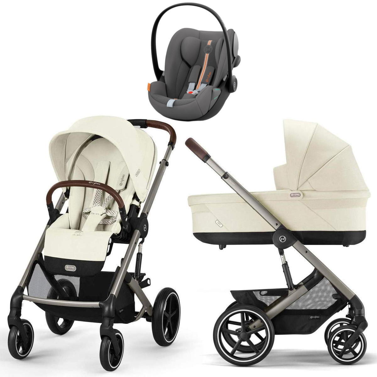 Коляска Cybex Balios S Lux TPE 2025 Cloud G i-Size Lava Grey Plus 3 в 1 Seashell Beige с дождевиками