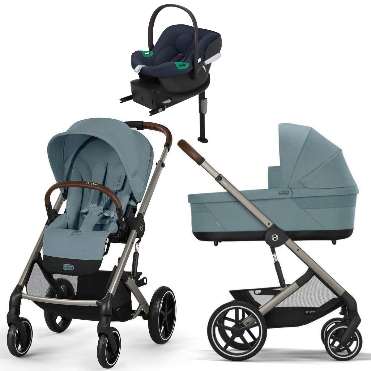 Коляска Cybex Balios S Lux TPE complete Aton B2 Bay Blue Base One 4 в 1 Stormy Blue с дождевиками