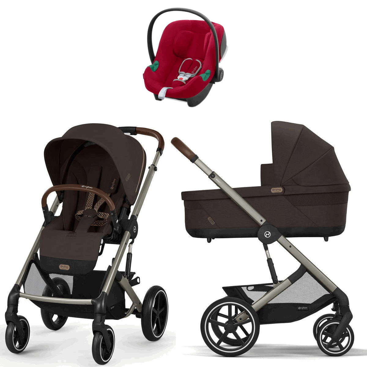 Коляска Cybex Balios S Lux TPE complete Aton B2 Dynamic Red 3 в 1 Chocolate Brown с дождевиками