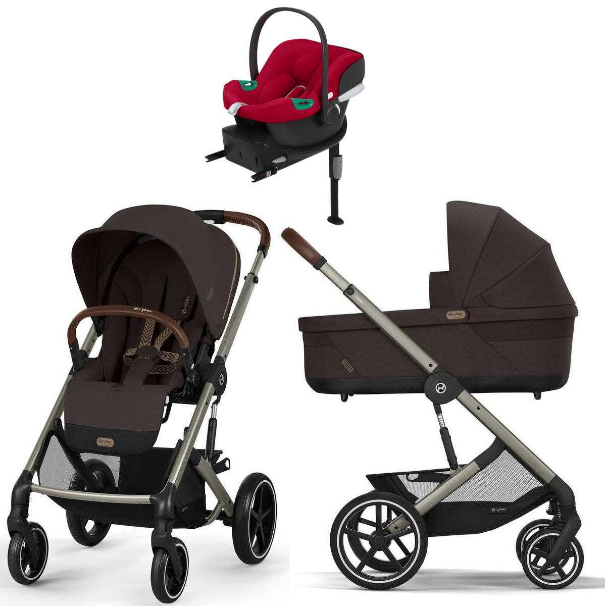 Коляска Cybex Balios S Lux TPE complete Aton B2 Dynamic Red Base One 4 в 1 Chocolate Brown с дождевиками