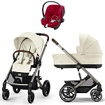 Коляска Cybex Balios S Lux TPE complete Aton B2 Dynamic Red Base One 4 в 1 Seashell Beige с дождевиками