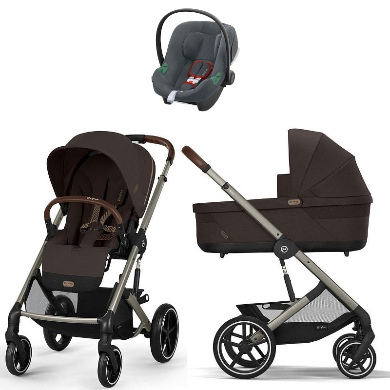 В комплекте: прогулочная коляска Balios S Lux, люлька Cot S Lux, автокресло Cybex Aton B2 i-Size с базой Isofix Base One, адаптер для установки на шасси автокресла.