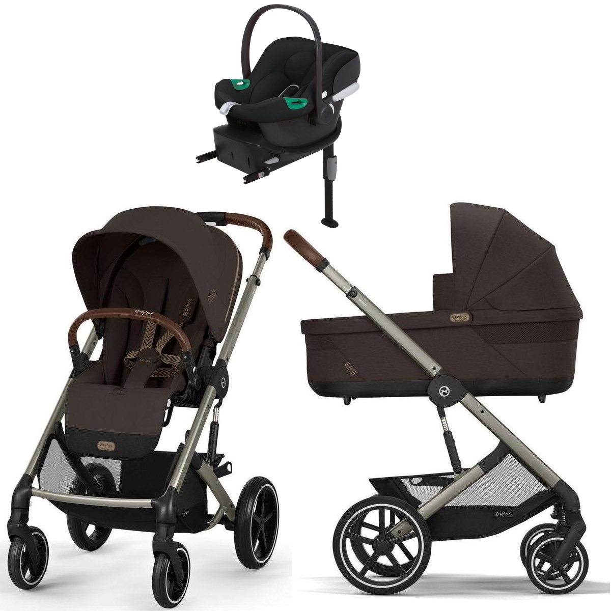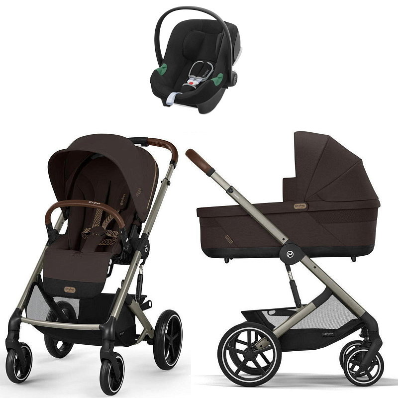 Коляска Cybex Balios S Lux TPE complete Aton B2 Volcano Black Base One 4 в 1 Chocolate Brown с дождевиками