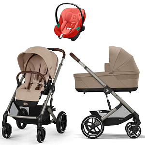 Коляска Cybex Balios S Lux TPE complete Aton S2 Hibiscus Red Base One 4 в 1 Almond Beige с дождевиками