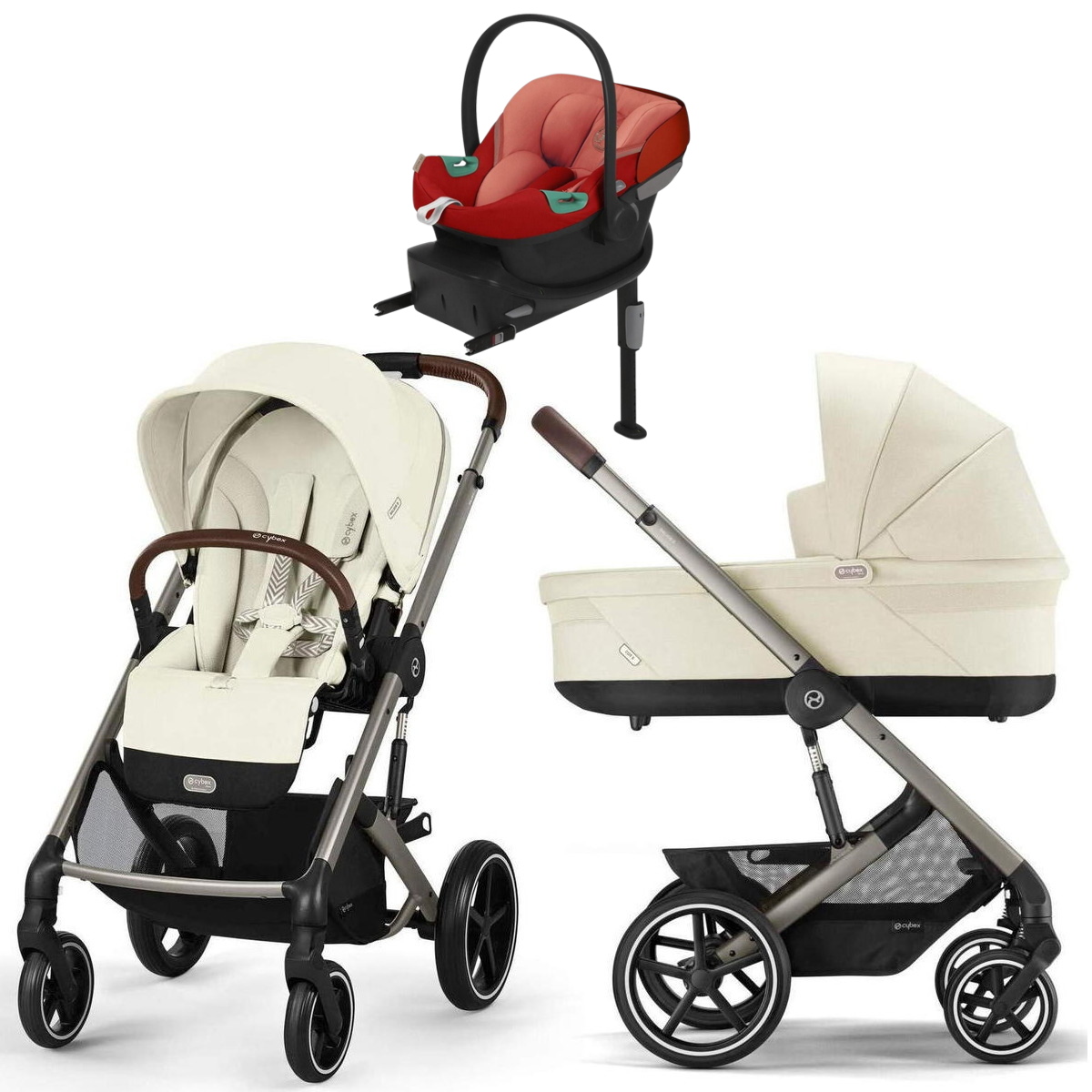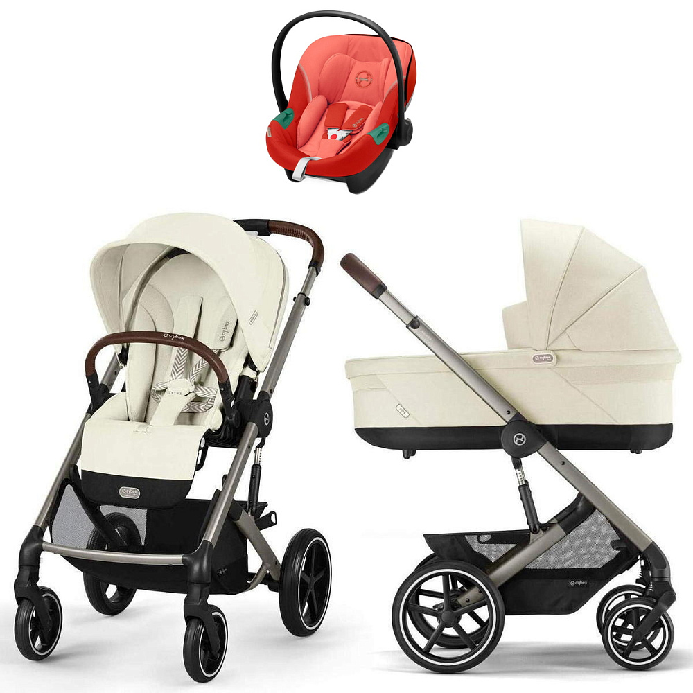 Коляска Cybex Balios S Lux TPE complete Aton S2 Hibiscus Red Base One 4 в 1 Seashell Beige с дождевиками