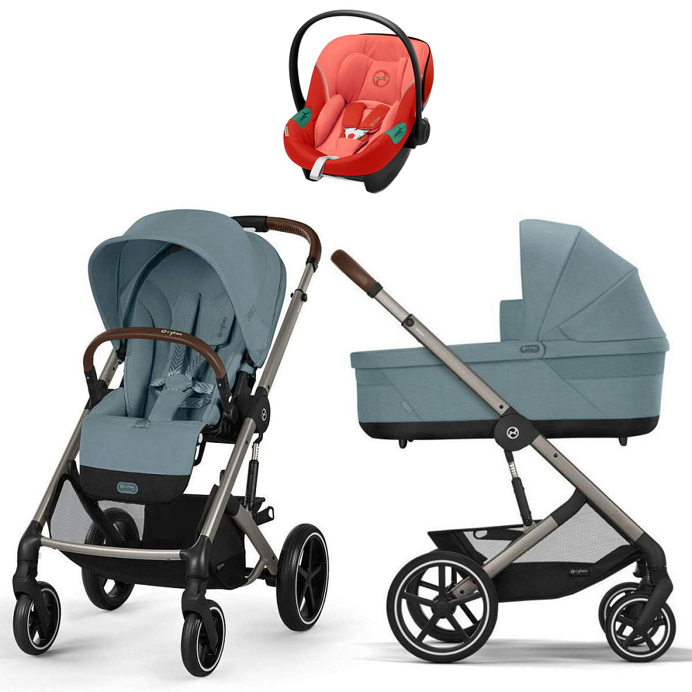 Коляска Cybex Balios S Lux TPE complete Aton S2 Hibiscus Red Base One 4 в 1 Stormy Blue с дождевиками