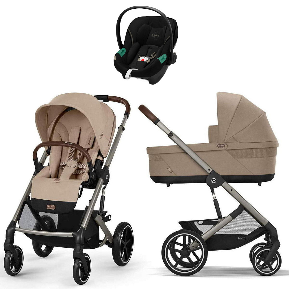 Коляска Cybex Balios S Lux TPE complete Aton S2 Moon Black Base One 4 в 1 Almond Beige с дождевиками