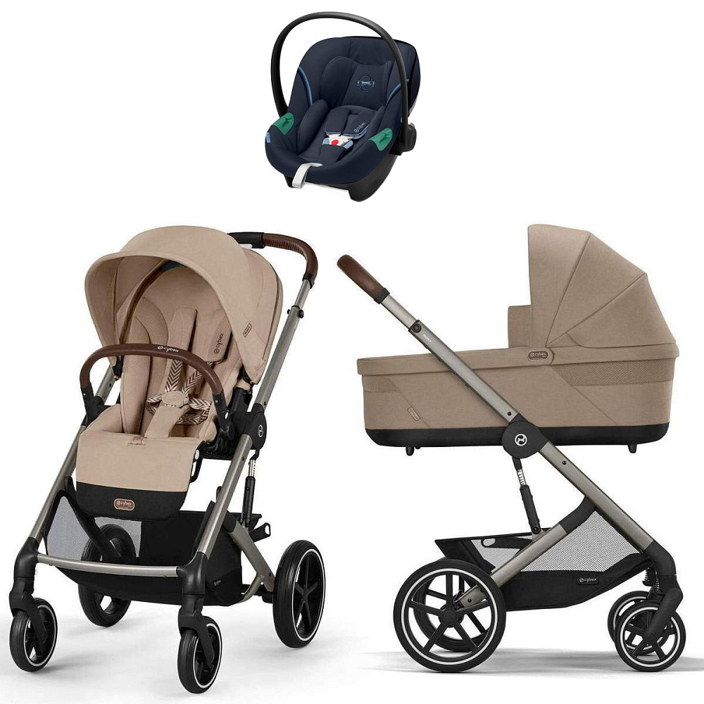 Коляска Cybex Balios S Lux TPE complete Aton S2 Ocean Blue Base One 4 в 1 Almond Beige с дождевиками