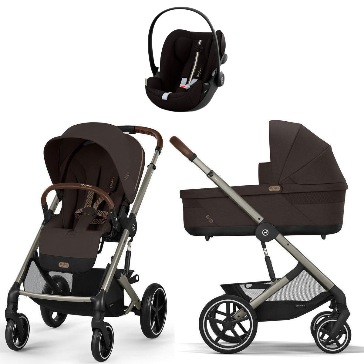 Коляска Cybex Balios S Lux TPE complete Cloud G Moon Black Plus 3 в 1 Chocolate Brown с дождевиками