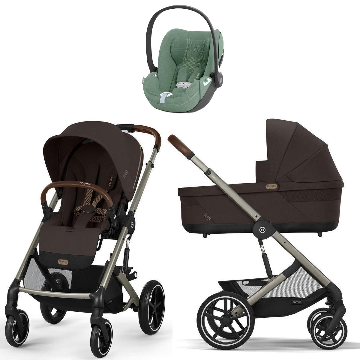 Коляска Cybex Balios S Lux TPE complete Cloud T Leaf Green Plus 3 в 1 Chocolate Brown с дождевиками