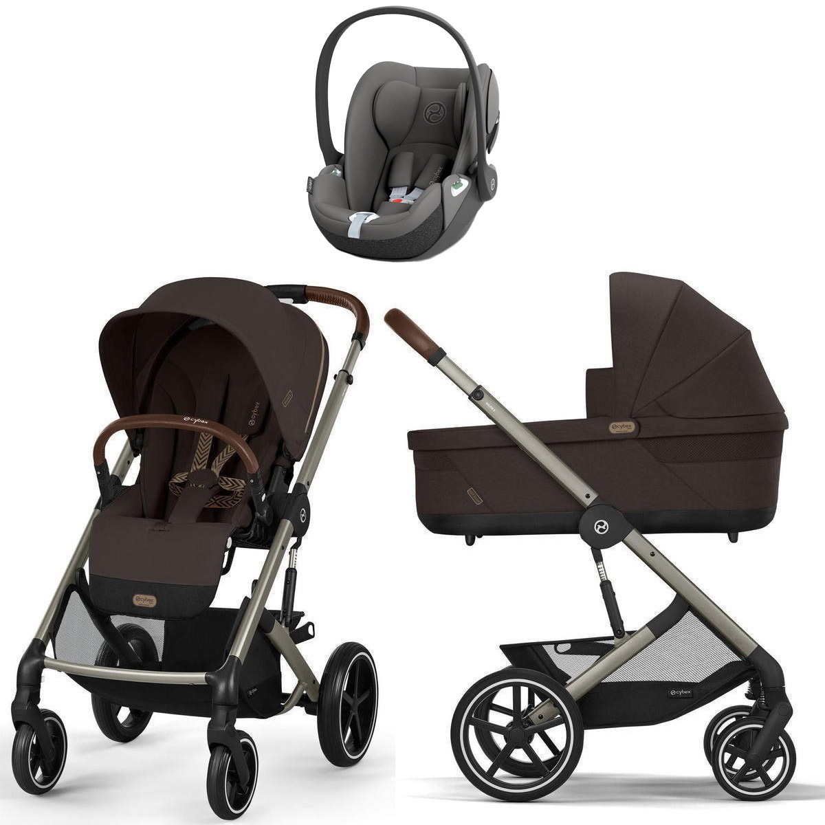 Коляска Cybex Balios S Lux TPE complete Cloud T Mirage Grey 3 в 1 Chocolate Brown с дождевиками