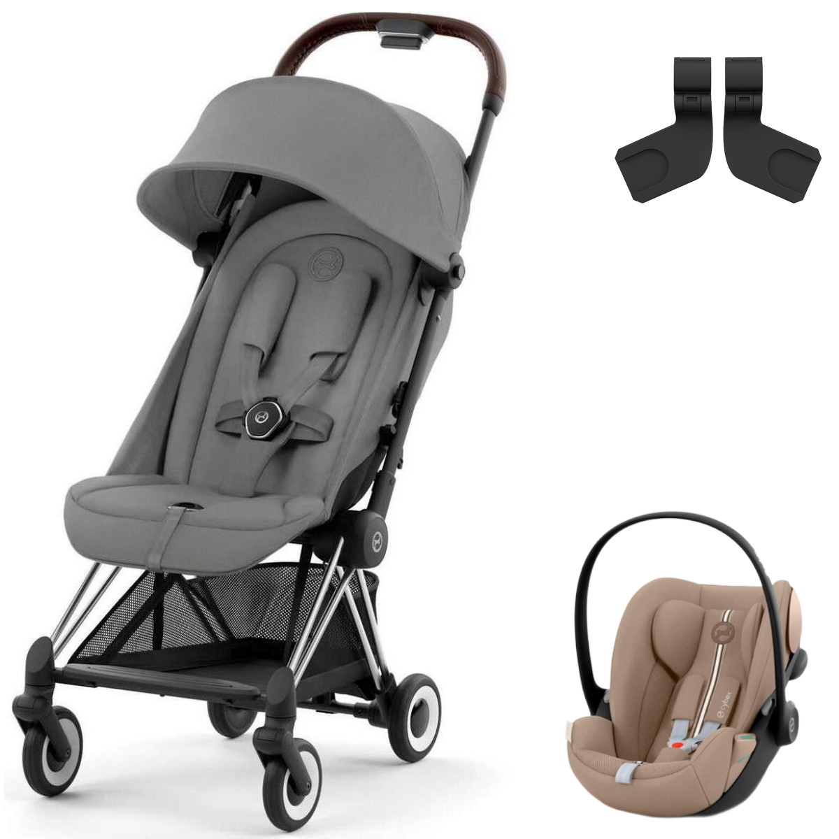 Коляска Cybex Coya Chrome Frame Cloud G i-Size Almond Beige Plus Mirage Grey с дождевикомНет оценокХарактеристики