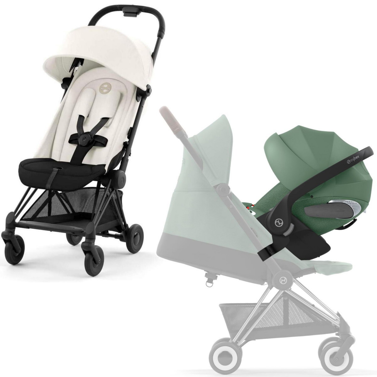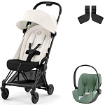 Коляска Cybex Coya Matt Black Frame Cloud T i-Size Leaf Green Plus Off White с дождевиком и бампером