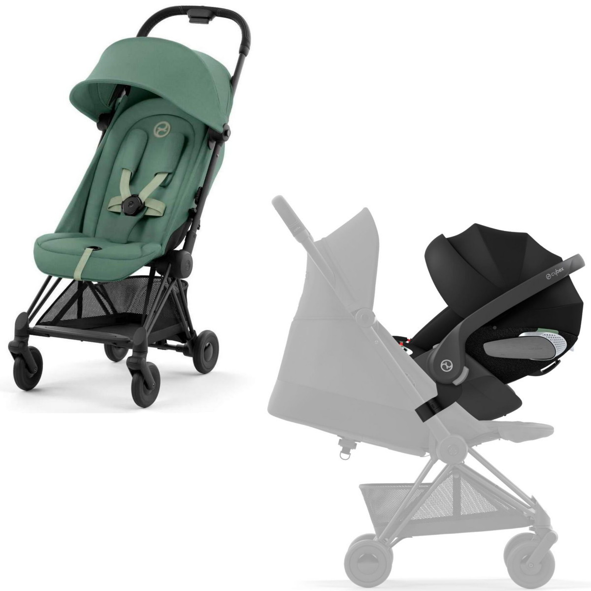Коляска Cybex Coya Matt Black Frame Cloud T i-Size Sepia Black Leaf Green с дождевиком