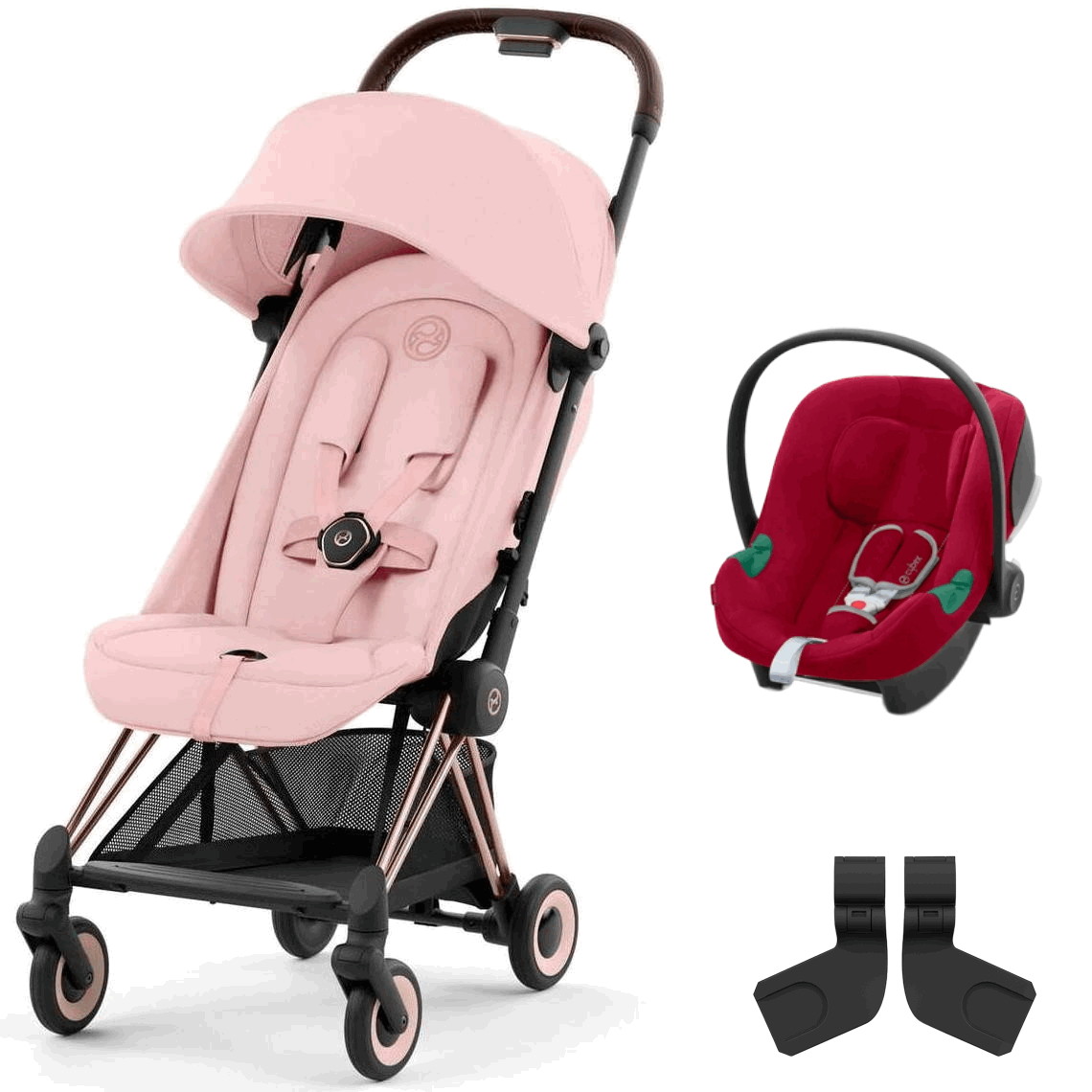 Коляска Cybex Coya Rosegold Frame Aton B2 i-Size Dynamic Red Peach Pink с дождевиком и бампером