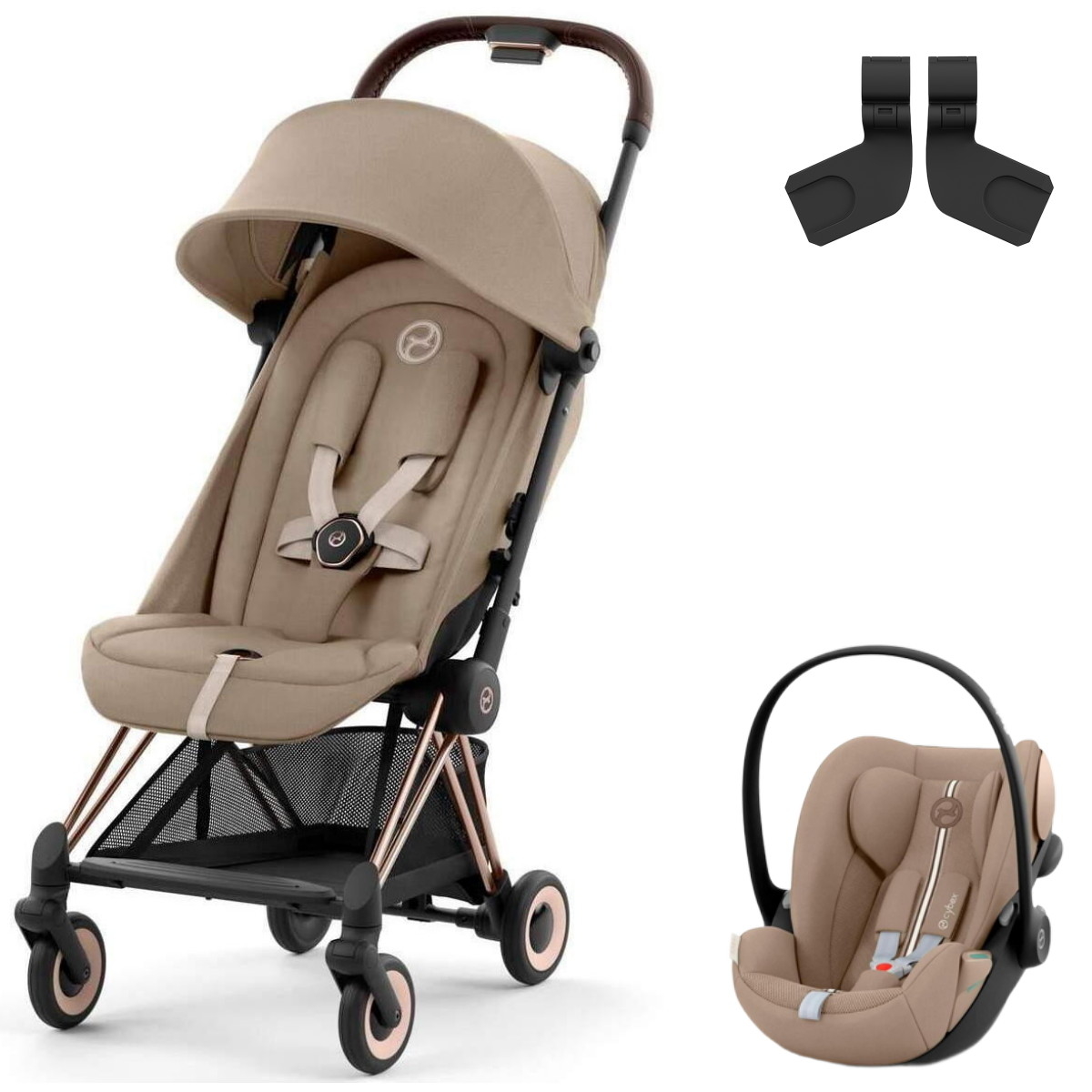 Коляска Cybex Coya Rosegold Frame Cloud G i-Size Almond Beige Plus Cozy Beige с дождевиком и бампером