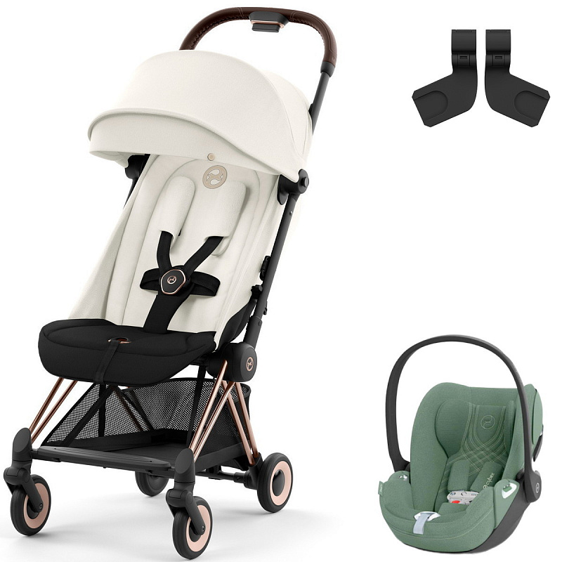Коляска Cybex Coya Rosegold Frame Cloud T i-Size Leaf Green Plus Off White с дождевиком и бампером