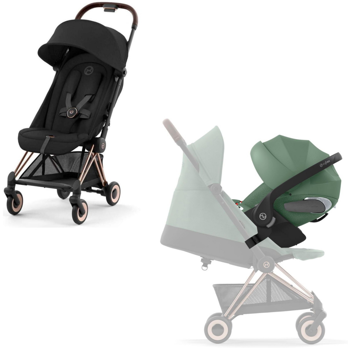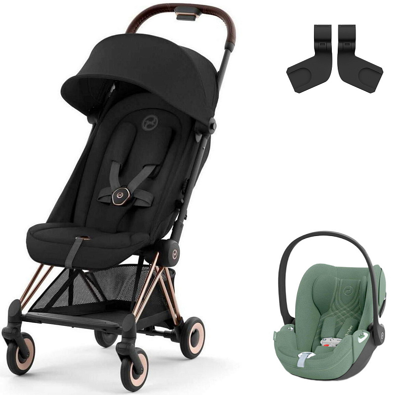 Коляска Cybex Coya Rosegold Frame Cloud T i-Size Leaf Green Plus Sepia Black с дождевиком и бампером