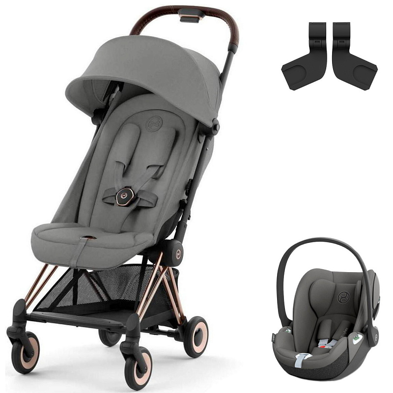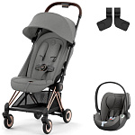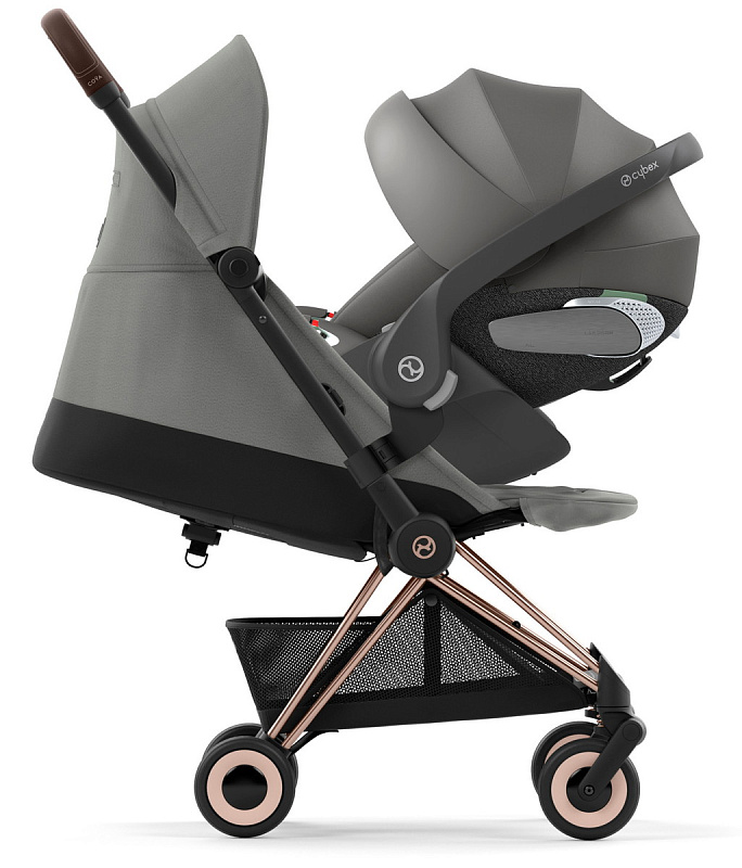 Коляска Cybex Coya Rosegold Frame Cloud T i-Size Mirage Grey Mirage Grey с дождевиком и бампером